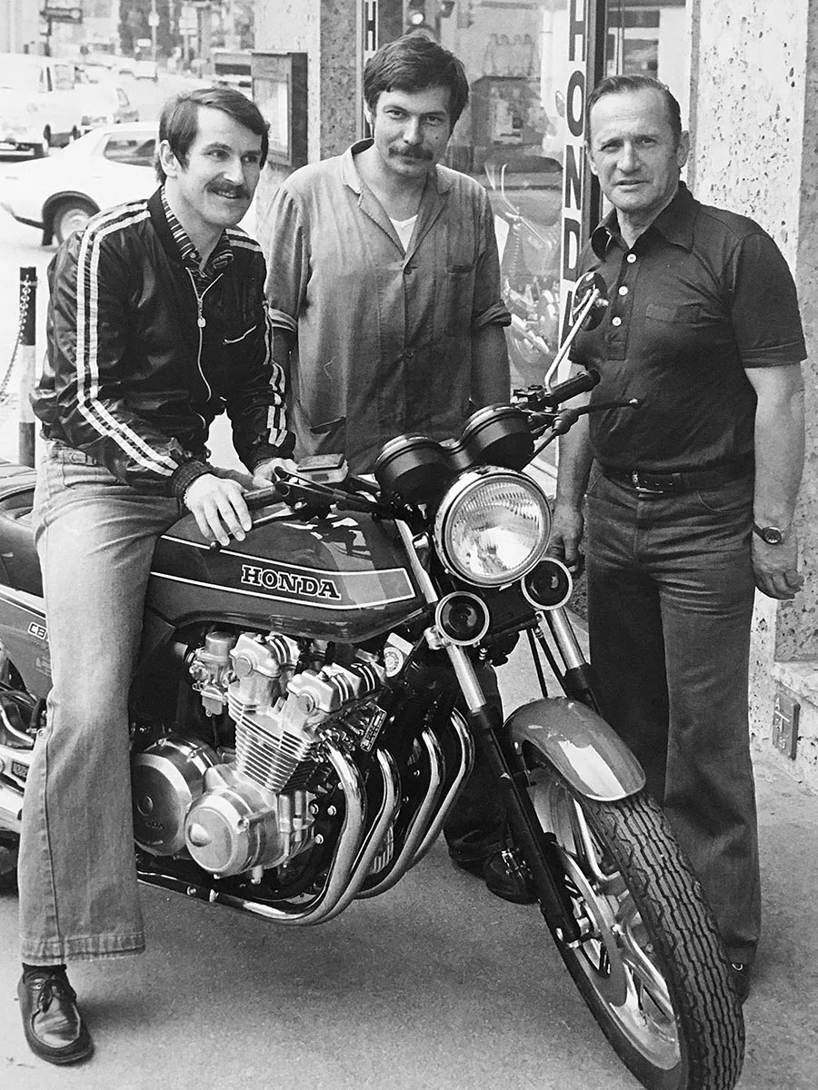 Manfred Stengl (Olympiasieger 1964 und Rennfahrer), Peter Frohnwieser und Vater in Salzburg-Gnigl